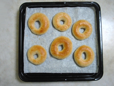 以前ブーブリキ検索をした際このページが出てきた。 「買ってください、ブーブリキ」 こちらのリンク先のページを 『菓子パン ブーブリキ』 で紹介しました。 その他のページなどから ショスタコーヴィチ:チェロ協奏曲第2番第2楽章 ・母が夫を亡くし、街頭でパン売りをした時に歌っていた歌だという説 ・そんな仕事をする人ではないという説 そこまでは読んだけど、不精者なので曲までは確認しませんでしたが ХТの «Бублики» メロディСатоко様ご確認の情報。 よし!かわいいヴァリちんのために母さん頑張ってブーブリキを売り歩くわ! 売るには作らねばならない。「作ってください、ブーブリキ」 Бублик: 厚い輪パン from コンサイス露和辞典 輪パンって…あまり聞かないというより初耳単語。輪パンがパンレシピ検索。 できれば本場のレシピ希望。сахар と молоко ぐらいしか 単語が分からないので、自動英訳と辞書頼りに探したけど ソフトブーブリキやバターや砂糖たっぷりのもの、ブーブリキを使ったレシピは 出てきましたが、なかなかこれといったイメージ通りのものがない。 サモワール(湯沸かし器)にかけられて、お茶と一緒に楽しむ乾パン らしいので 基本は硬そうです。 "菓子パン" と書きましたが、日銭稼ぎに売っていたのは 甘みも少ない質素なカチカチのパンだろう。(勝手な思い込み) カチカチぼそぼそっぽいのは見つけられず、結局 ベーグルレシピ で代用。 捏ね捏ねしながら ♪クピチェ ブーブリキ ブーブリキ…ブービキ…豚の合い挽きでも入ってそうな響きですが 今回はプレーン。4個分の分量だけど細い輪にしたいので6等分。 生地を棒状に伸ばす工程は説明の手順で5個、1個はそのまま棒状に。 強力粉は縮む力が強いので、どうしても中央が太めになりやすく 輪の繋ぎ目が細くなりがち。成形に手こずる。 パン作りの工程には珍しく(と思ふ)、生地を焼く前にさっと茹でるのだ。 それによって表面が硬くなるのかな。 オーブン190℃で焼くこと15分、色白だったのでもう数分。そして完成! クリックで 見る必要無い もう少し大きい サイズの写真が ご覧頂けます モルトエキスが無いから代わりに砂糖をお湯に入れたのですが色ツヤ良くない。 捏ねも発酵もイマイチ。等分の意味を無視した適当分割による サイズ・形状不揃いごまかし配置が右の写真(笑) サイズバラバラ表面ぼこぼこ。不恰好でとても売り物にはならない。 これじゃミルク代稼げないわ…ごめんね、こんなダメな母を許して…。 PR | ||